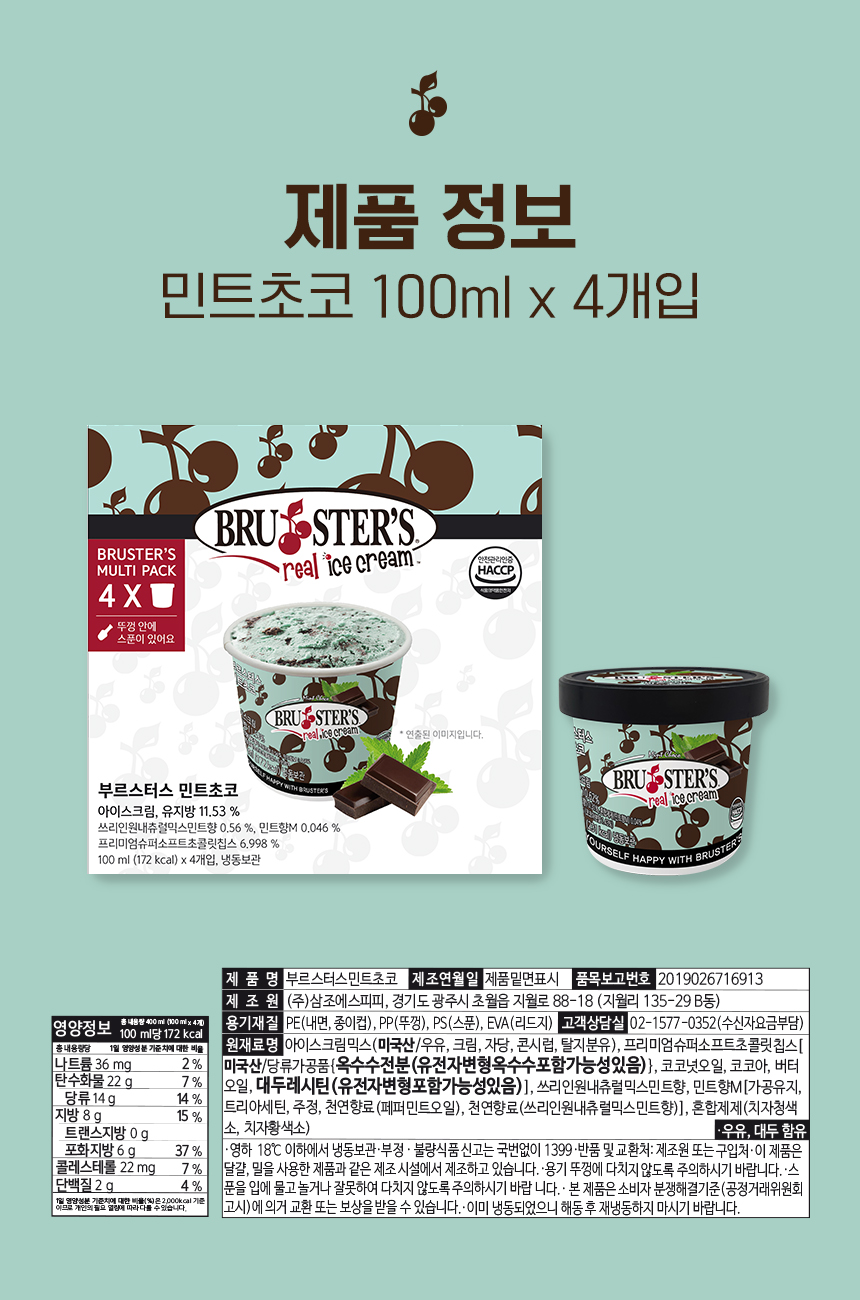 부르스터스 아이스크림 미니컵 4구팩 세트 민트초코
